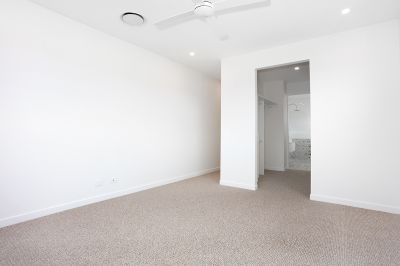 Downstairs : Bedroom and two-way bathroom. Open plan kitchen, living, and dining leading to private low maintenance courtyard. Single garage with laundry and storage.