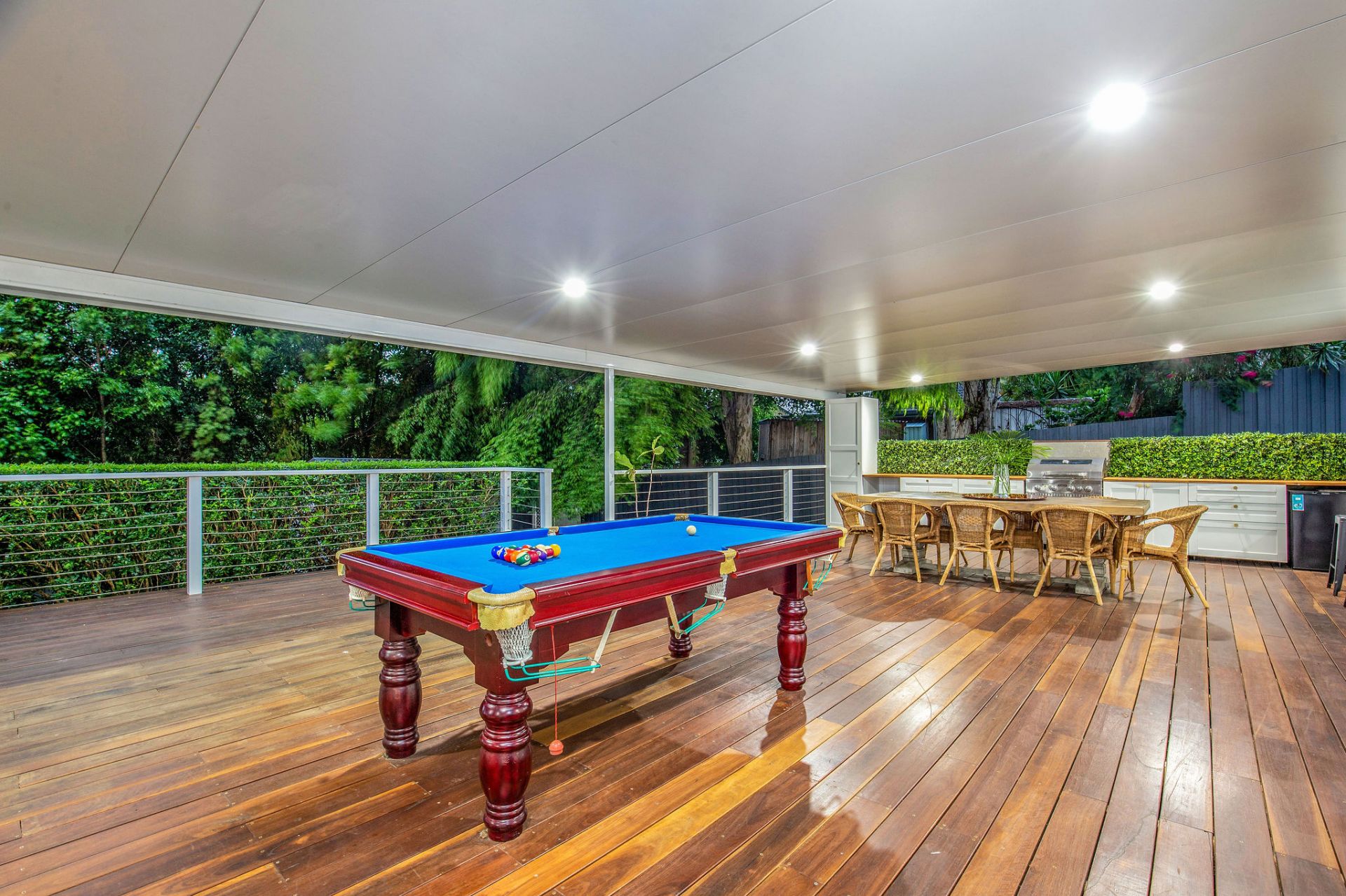 The spacious family area is the perfect place to entertain family and guests with multiple french doors which open seamlessly to the spotted gum 110m2 entertaining deck complete with your own outdoor kitchen and servery window to the kitchen. Enjoy the view while overlooking a private fully fenced backyard with spa and plenty of room for the kids to explore.