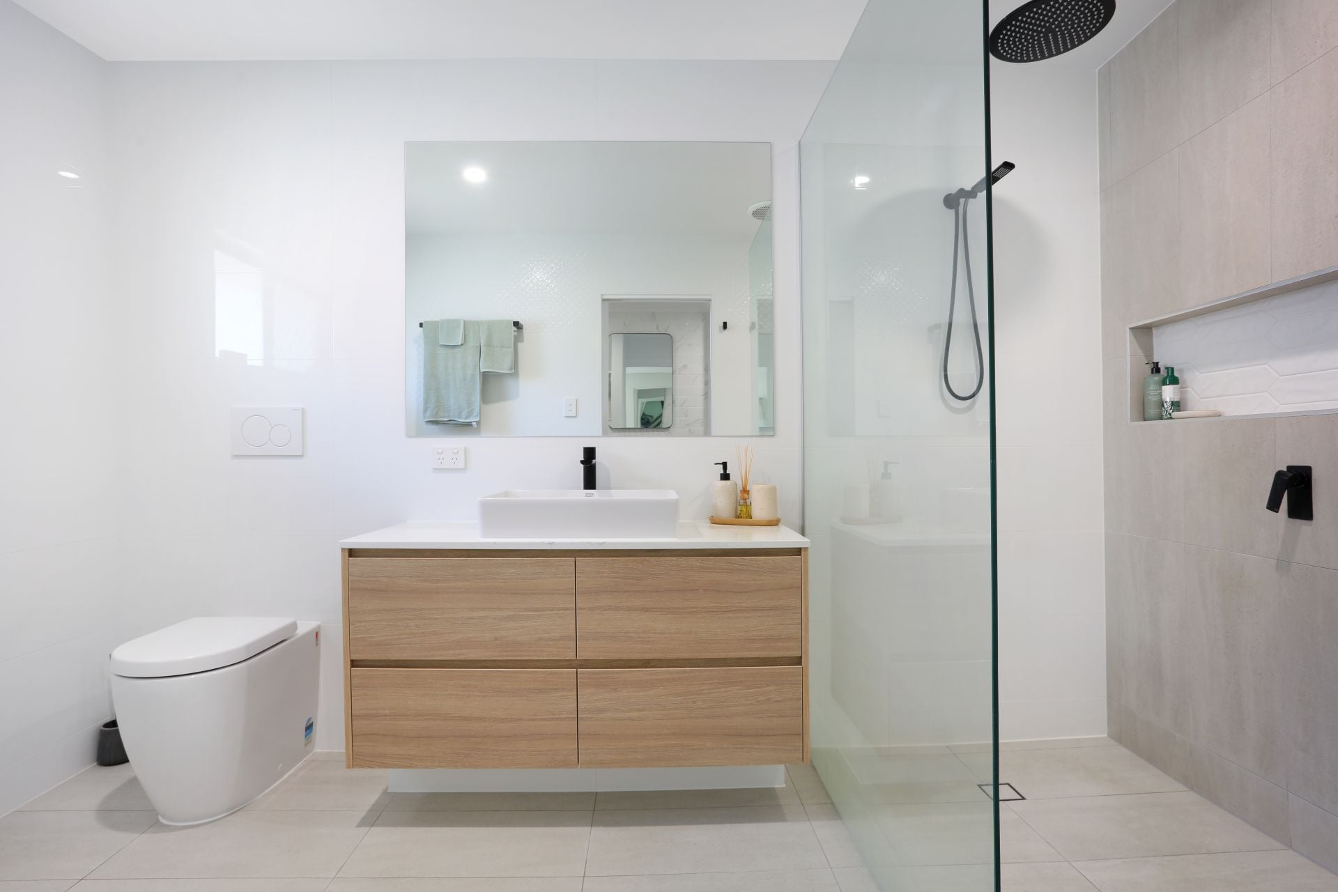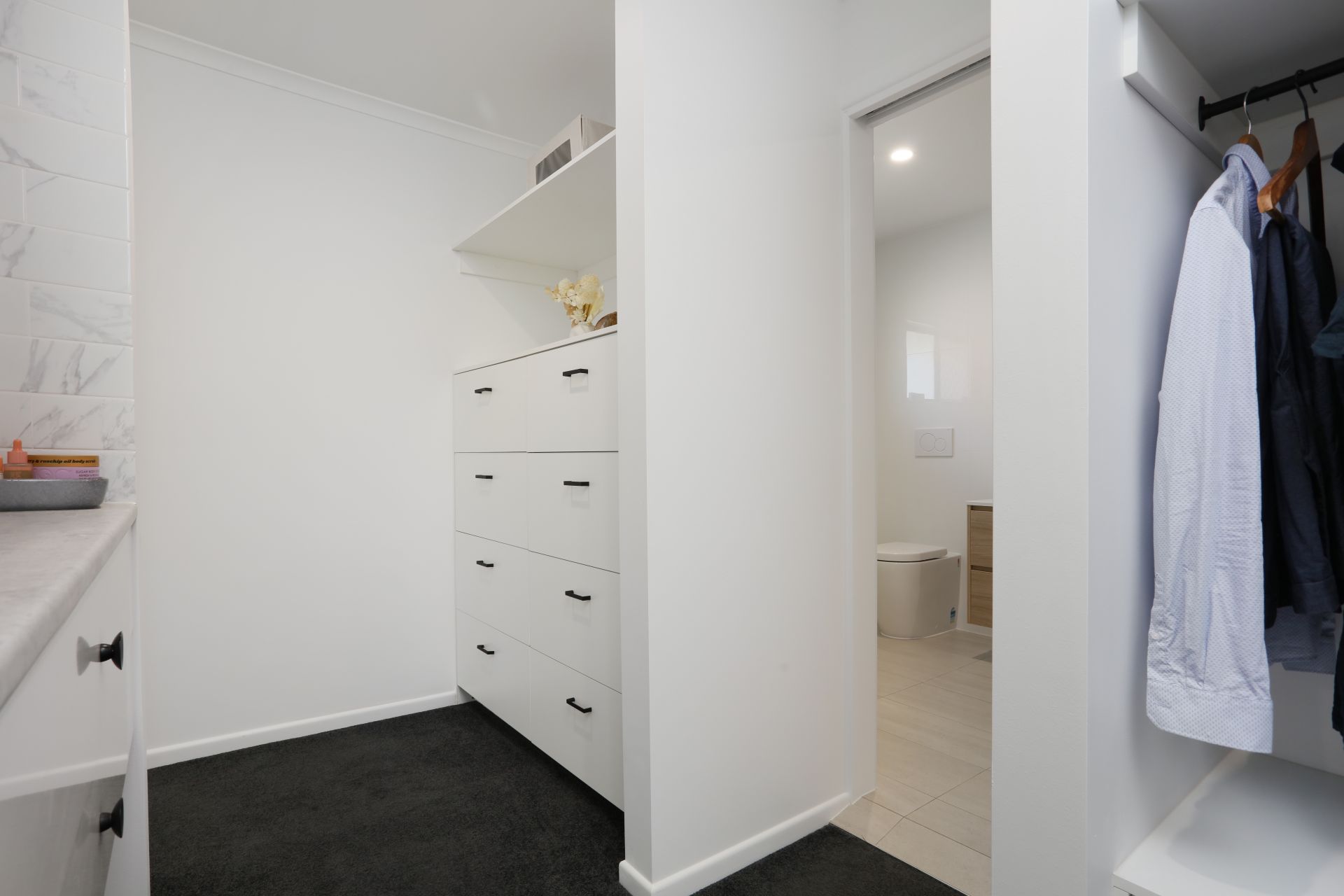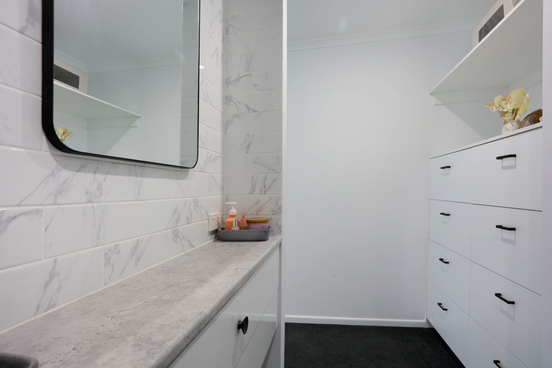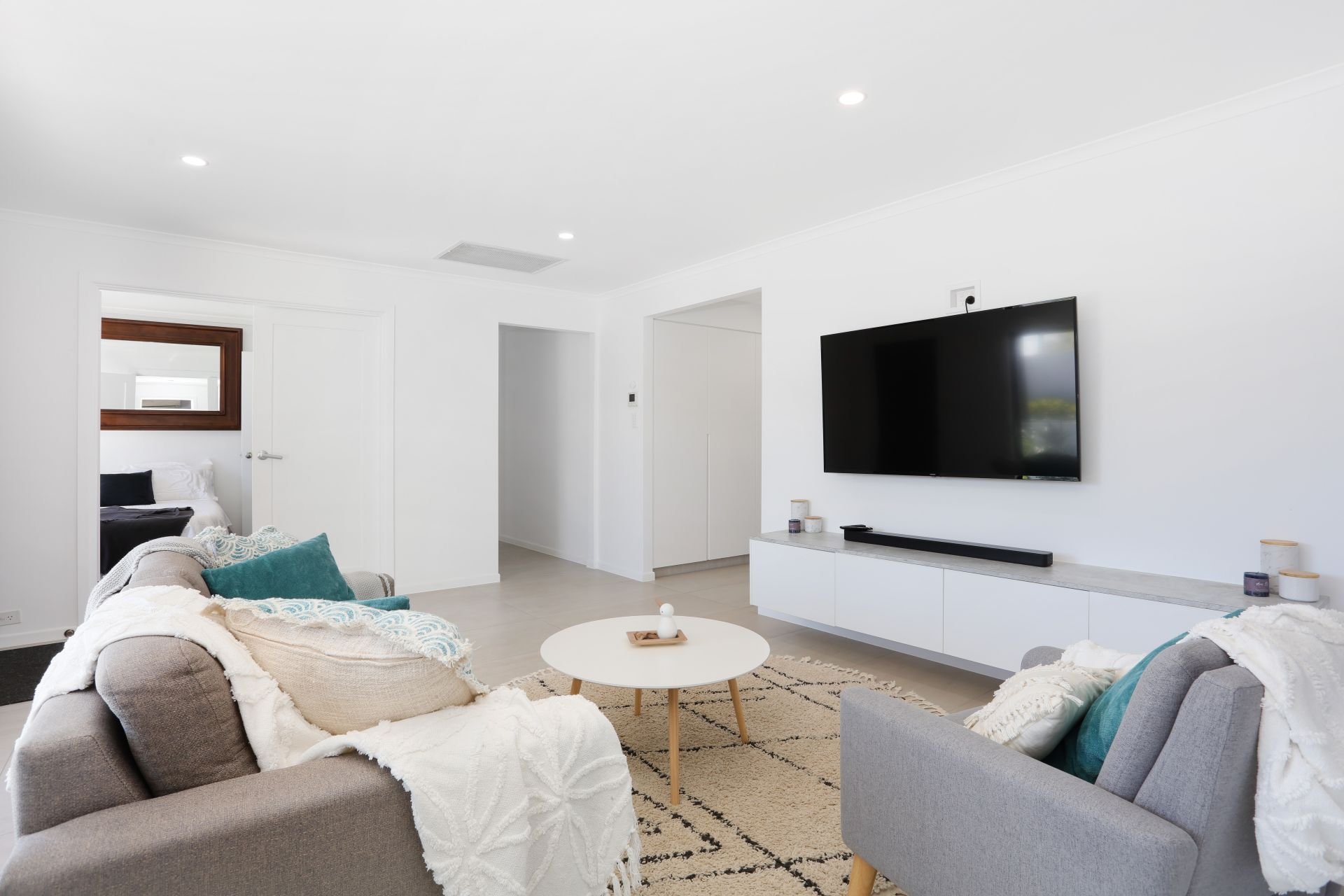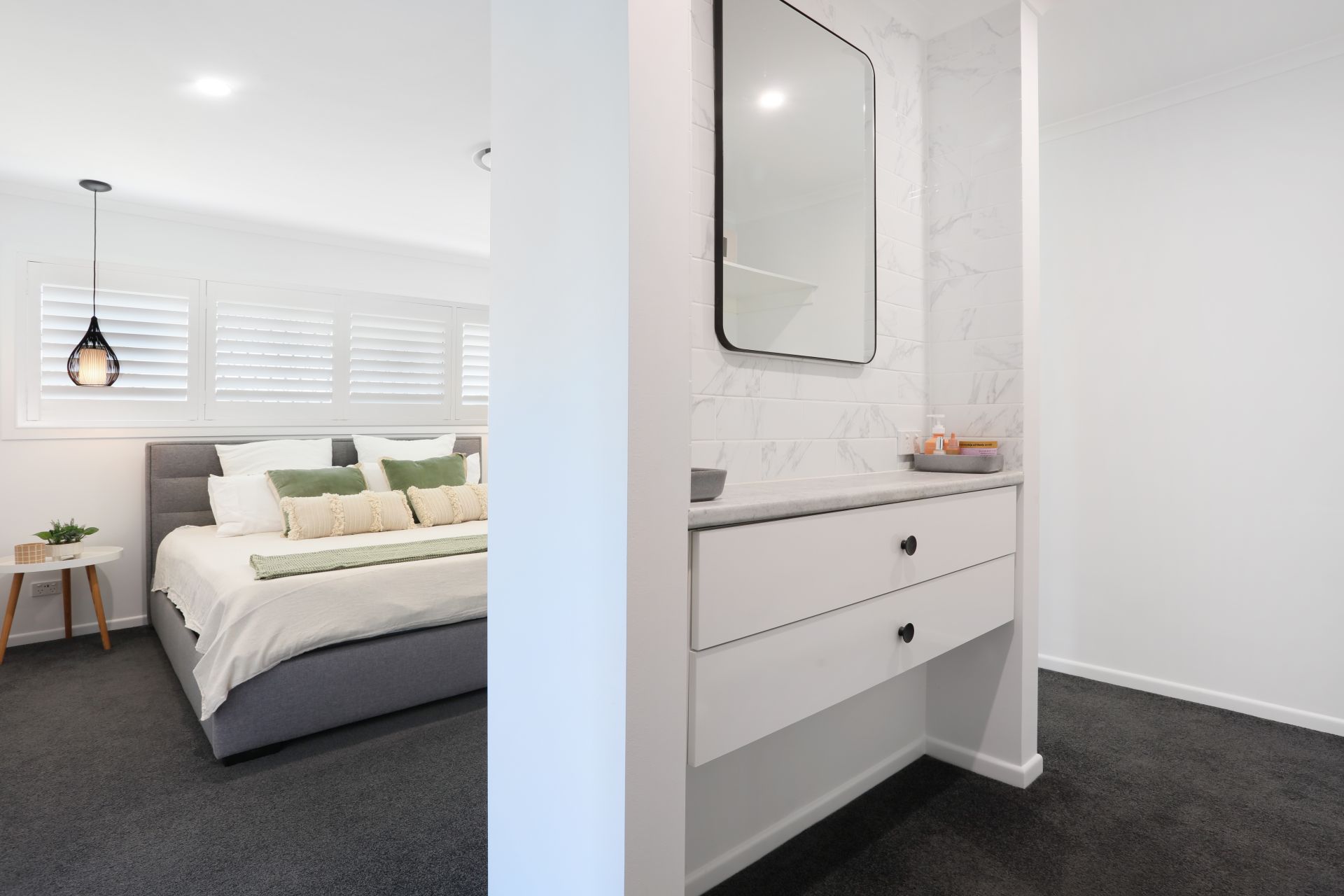 The master bedroom features a walk-in wardrobe, private built-in vanity and a spacious ensuite. Both bathrooms are adorned with floor-to-ceiling tiles for a sleek, hotel-style finish.