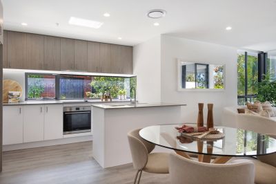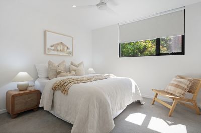 This two-bedroom apartment is one of only 4 in the building with this floor plan. 90m2 internal space , with an open plan kitchen with windows, a study nook, and rare second bedroom with a full opening window.
