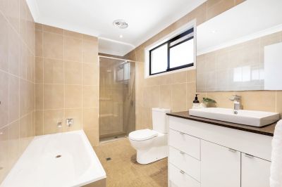 The granny flat is fully self-contained with its own separate entrance, a full-size bedroom, ensuite, generous separate living and kitchen plus courtyard.