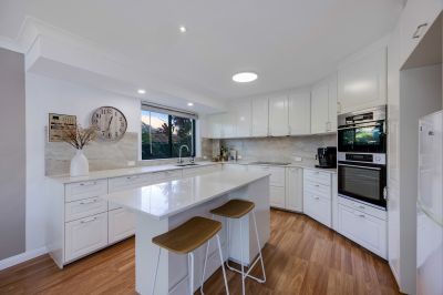 The modern kitchen offers an abundance of storage both in the kitchen and the island benchtop. Well set out so multiple people can be in the kitchen at one time.