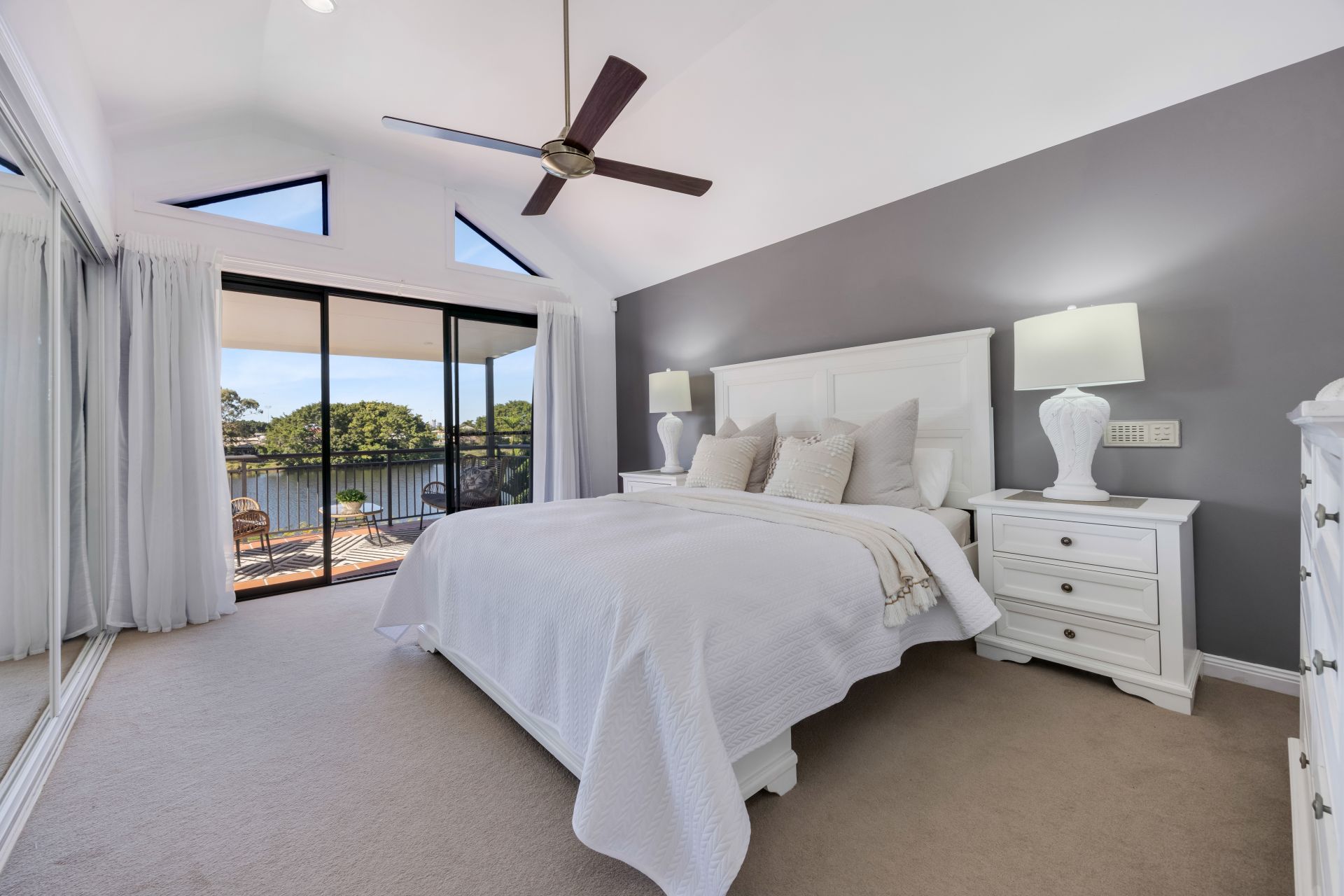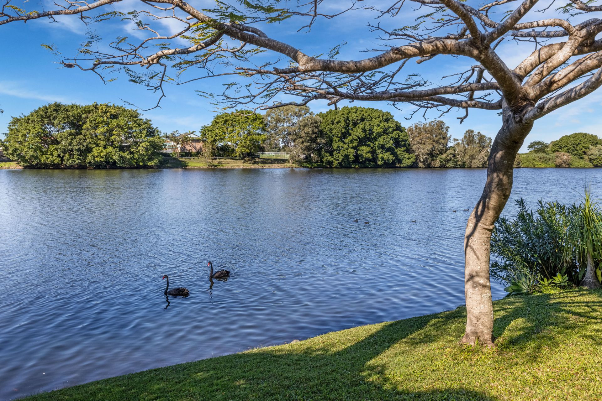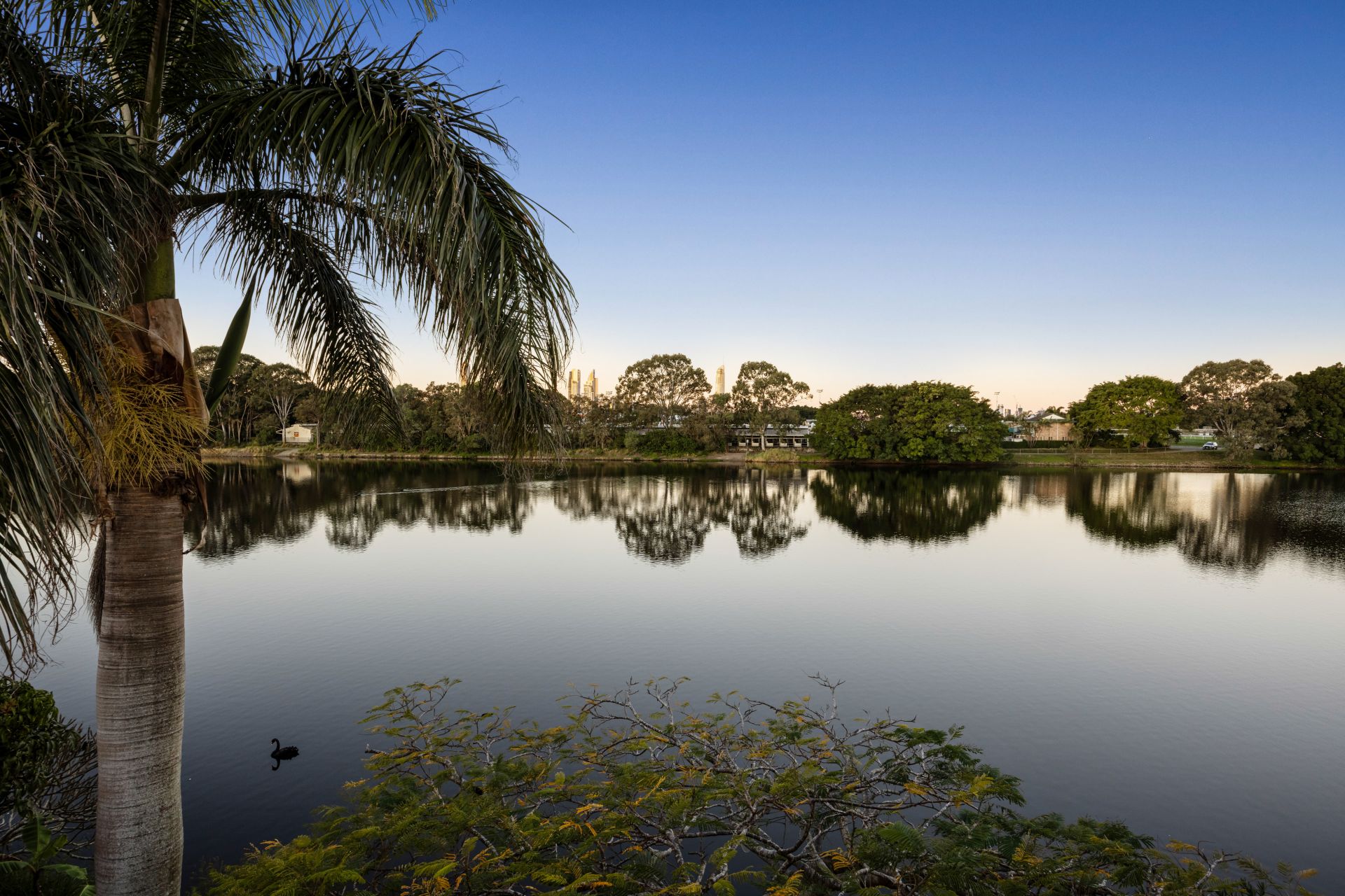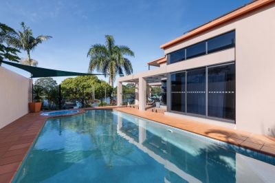 Situated in a small quiet cul-de-sac, this home faces east on the non-motorised section of the Nerang River. Offering whisper quiet tranquil water views, Surfers Paradise Skyline views and daily visits from a Black Swan Family.